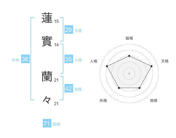 蓮實 蘭々さんを姓名の画数から五運を鑑定