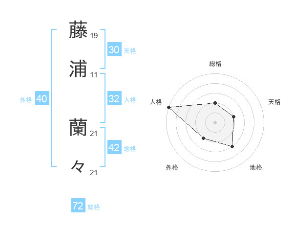 藤浦 蘭々さんを姓名の画数から五運を鑑定