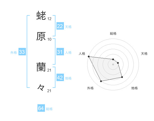 蛯原 蘭々さんの総格は64画の1点!