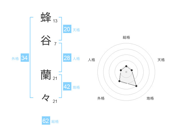 蜂谷 蘭々さんを姓名の画数から五運を鑑定