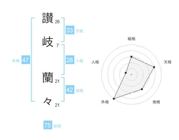 讃岐 蘭々さんを姓名の画数から五運を鑑定