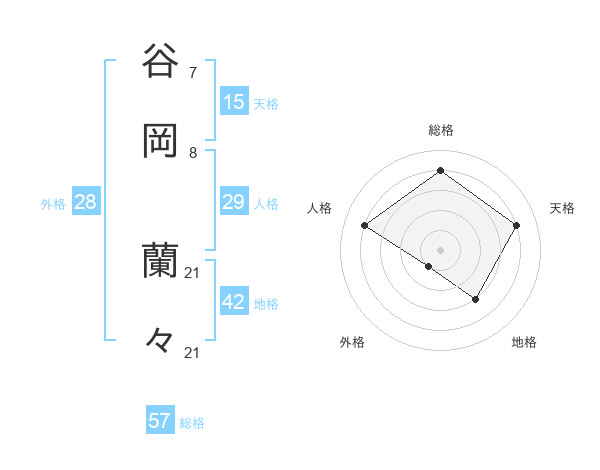谷岡 蘭々さんを姓名の画数から五運を鑑定