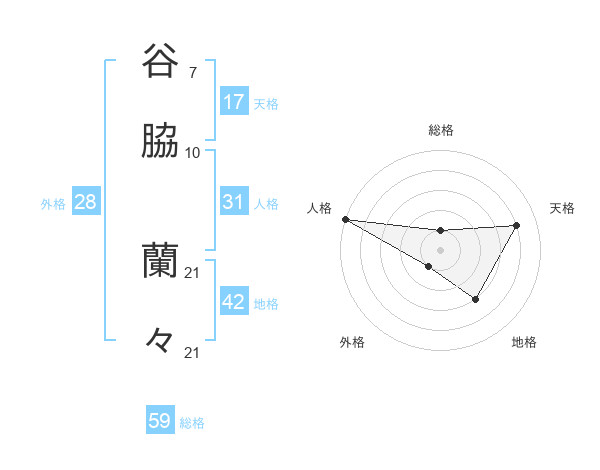 谷脇 蘭々さんを姓名の画数から五運を鑑定