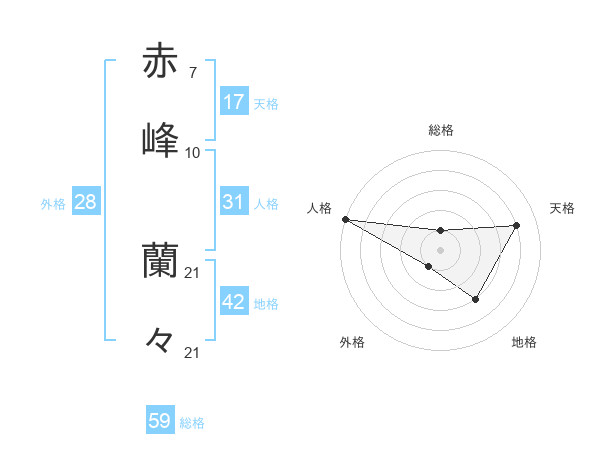 赤峰 蘭々さんを姓名の画数から五運を鑑定