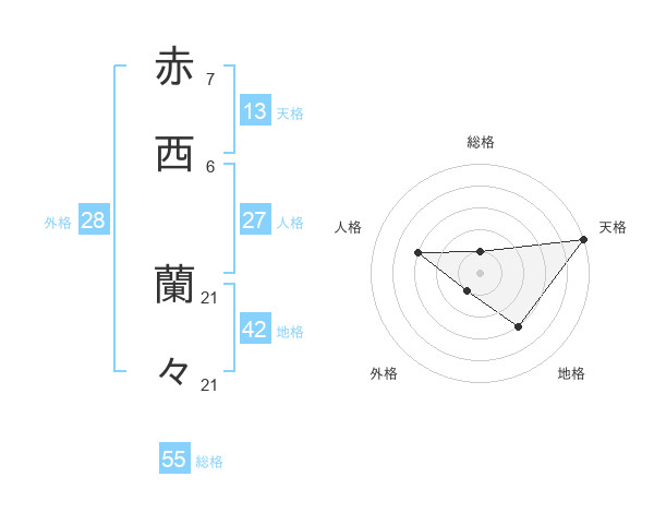 赤西 蘭々さんの天格は13画の5点!