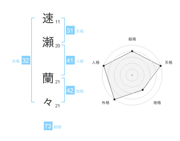 速瀬 蘭々さんの総格は73画の4点!