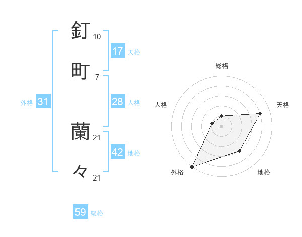 釘町 蘭々さんの総格は59画の1点!