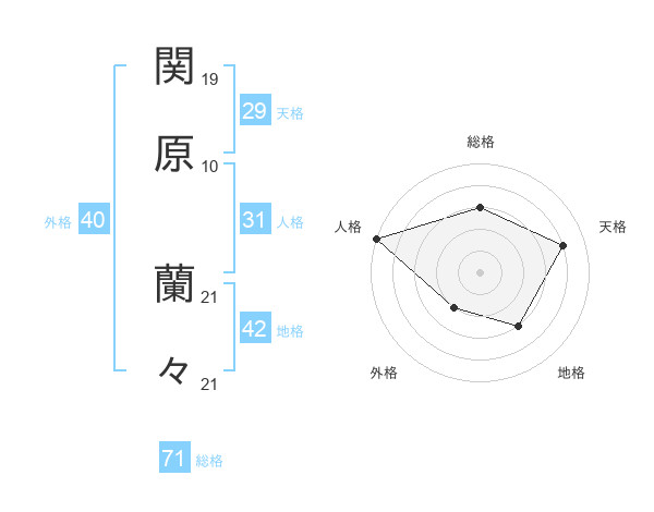 関原 蘭々さんの総格は71画の3点!