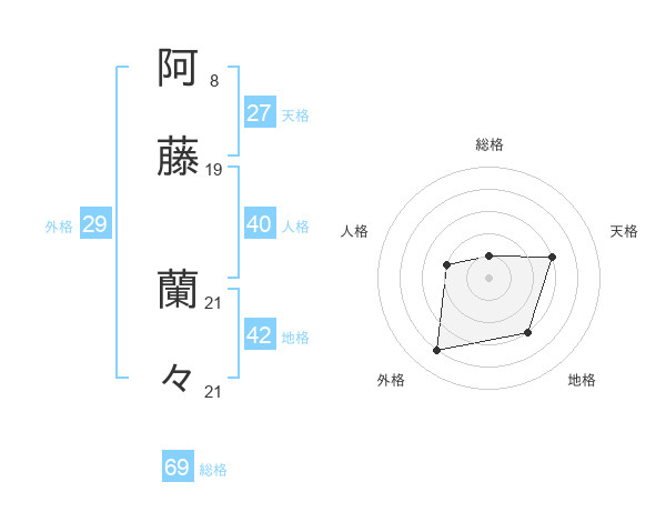 阿藤 蘭々さんの総格は69画の1点!