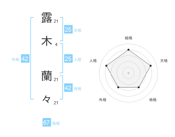 露木 蘭々さんの総格は67画の4点!