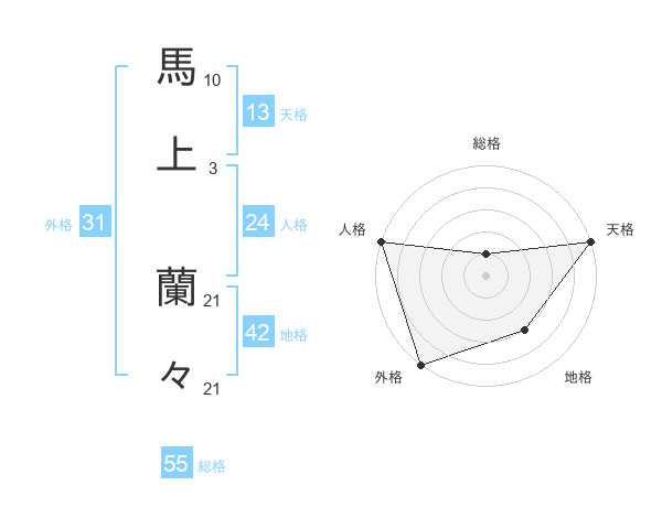 馬上 蘭々さんの天格は13画の5点!