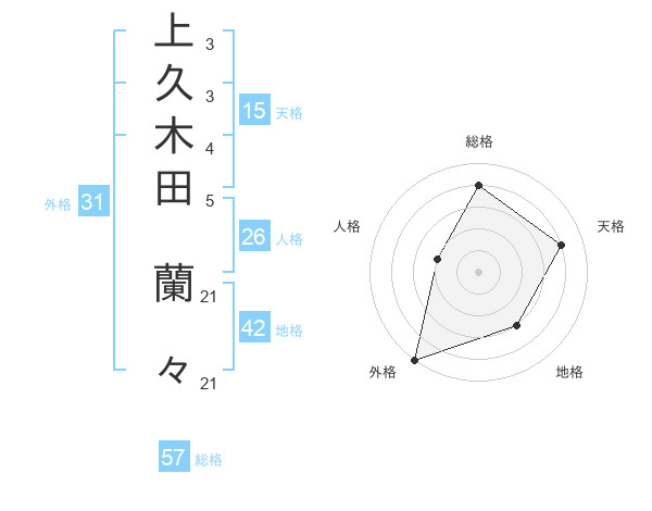 上久木田 蘭々さんの外格は31画の5点!