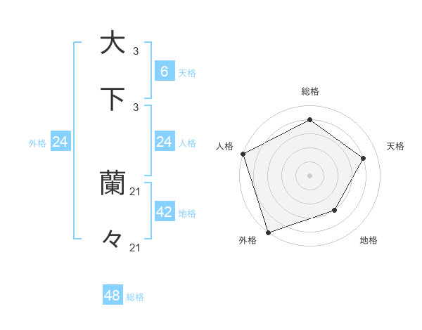 大下 蘭々さんを姓名の画数から五運を鑑定