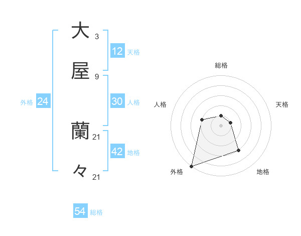 大屋 蘭々さんを姓名の画数から五運を鑑定