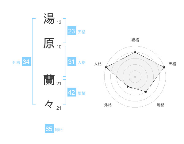 湯原 蘭々さんを姓名の画数から五運を鑑定