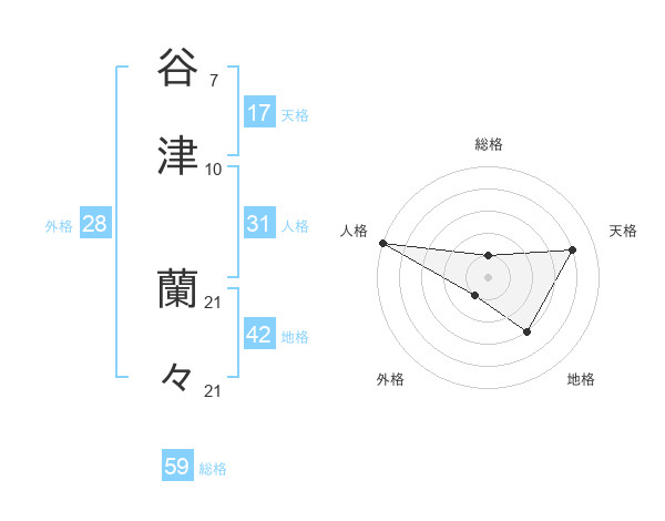 谷津 蘭々さんの総格は59画の1点!