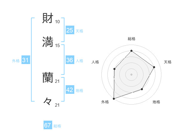 財満 蘭々さんの総格は67画の4点