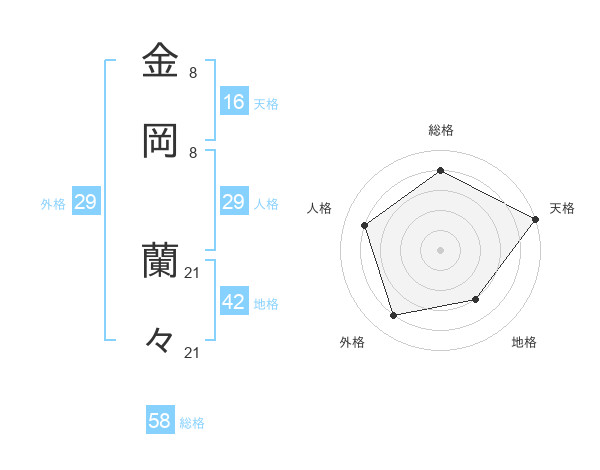 金岡 蘭々さんを姓名の画数から五運を鑑定