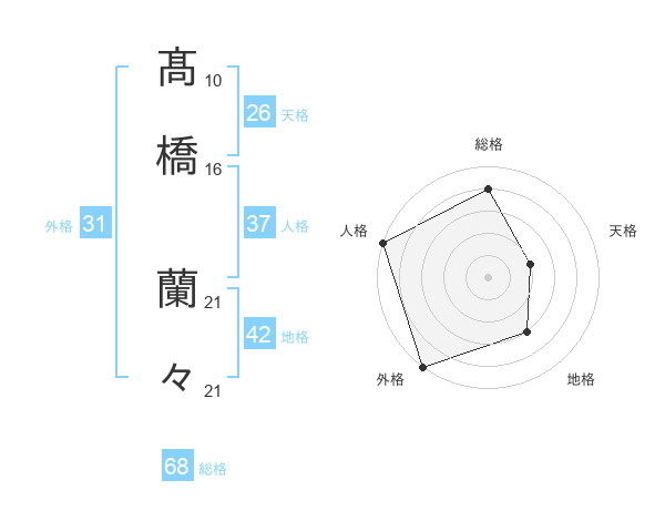 髙橋 蘭々さんを姓名の画数から五運を鑑定