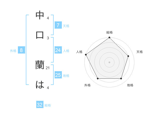 中口 蘭はさんを姓名の画数から五運を鑑定