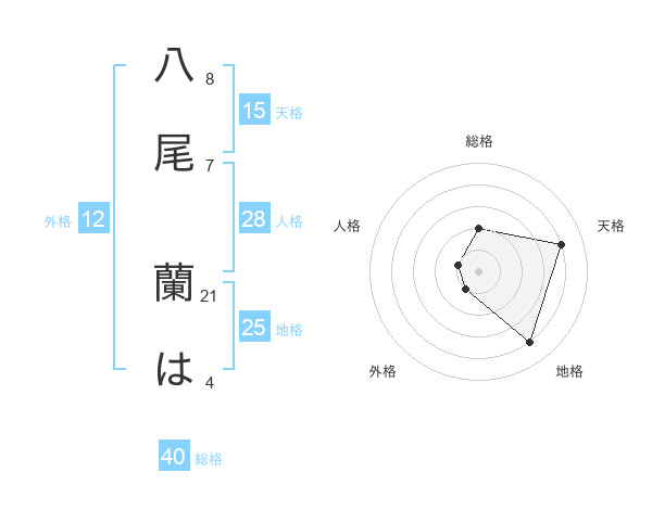 八尾 蘭はさんの総格は40画の2点!
