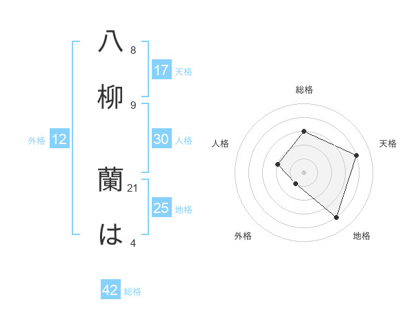 八柳 蘭はさんを姓名の画数から五運を鑑定