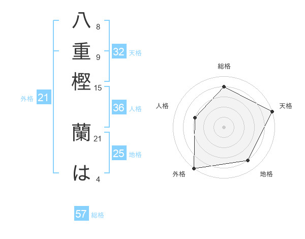八重樫 蘭はさんの総格は57画の4点!