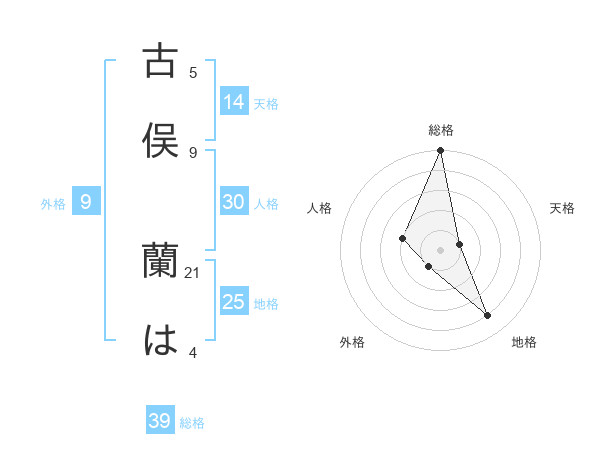 古俣 蘭はさんの総格は39画の5点!