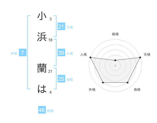 小浜 蘭はさんの総格は46画の1点!