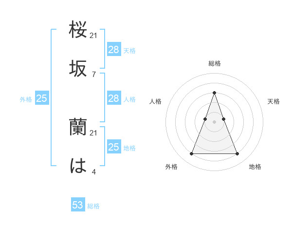 桜坂 蘭はさんの総格は53画の3点!