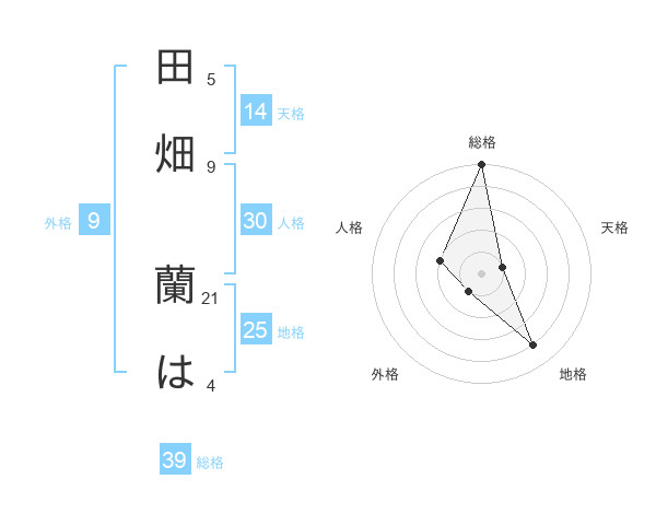 田畑 蘭はさんの総格は39画の5点!