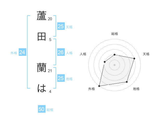 蘆田 蘭はさんを姓名の画数から五運を鑑定