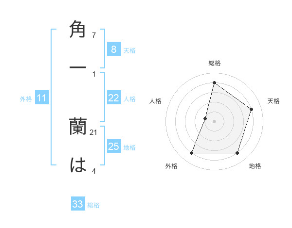 角一 蘭はさんの地格は25画の4点!