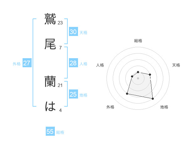 鷲尾 蘭はさんを姓名の画数から五運を鑑定