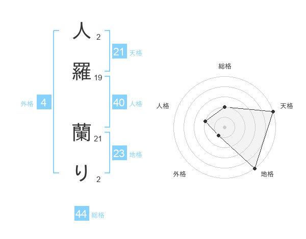 人羅 蘭りさんを姓名の画数から五運を鑑定