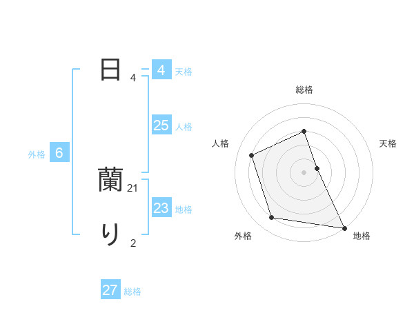 日 蘭りさんの地格は23画の5点!