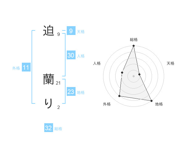 迫 蘭りさんを姓名の画数から五運を鑑定