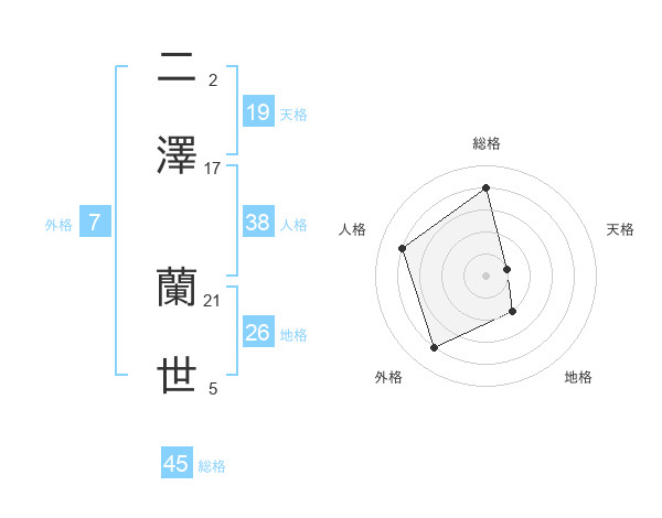 二澤 蘭世さんの総格は45画の4点!