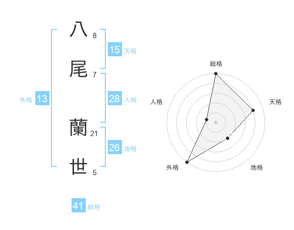 八尾 蘭世さんの総格は41画の5点!