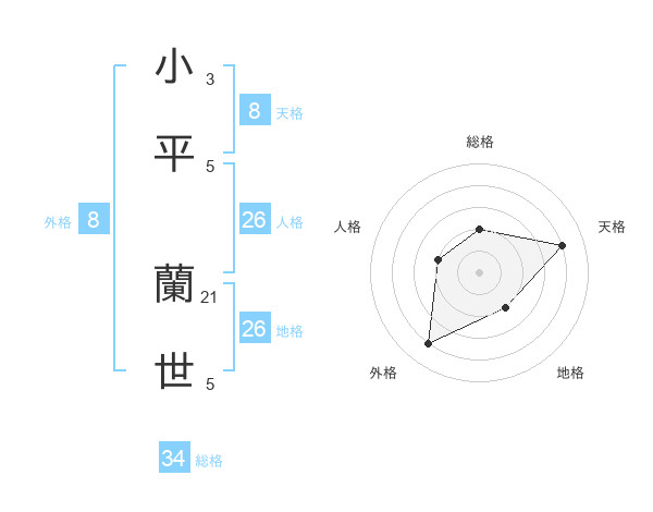 小平 蘭世さんを姓名の画数から五運を鑑定