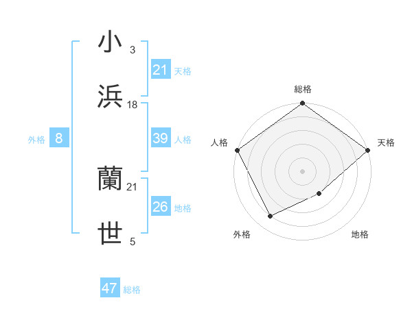 小浜 蘭世さんを姓名の画数から五運を鑑定