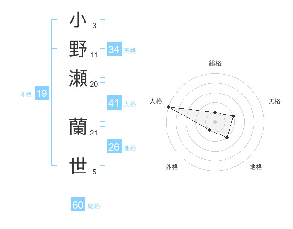 小野瀬 蘭世さんを姓名の画数から五運を鑑定