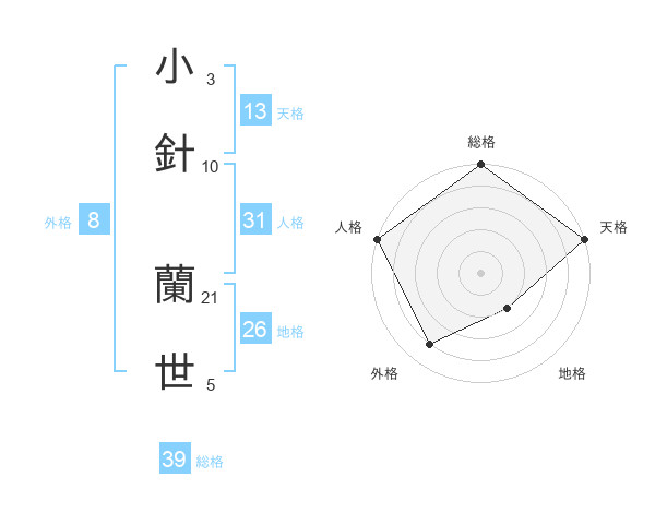 小針 蘭世さんを姓名の画数から五運を鑑定