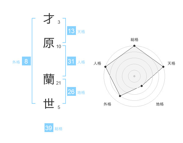 才原 蘭世さんの総格は39画の5点!