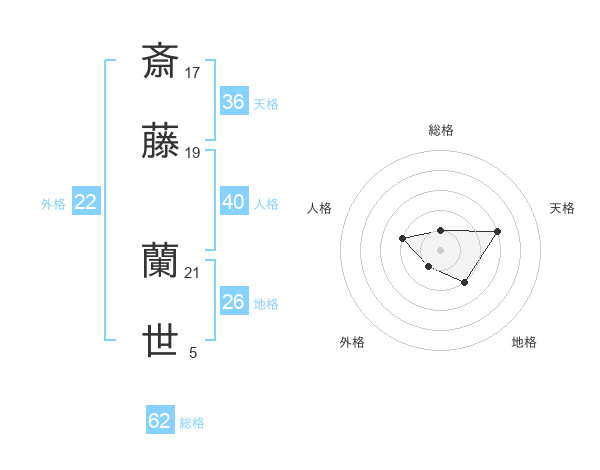斎藤 蘭世さんの外格は22画の1点!