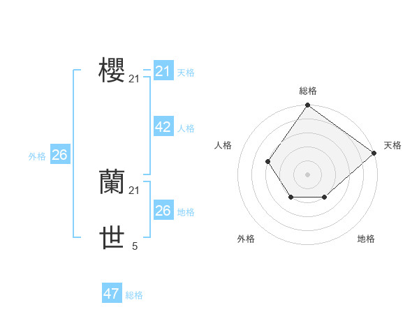 櫻 蘭世さんを姓名の画数から五運を鑑定