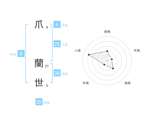 爪 蘭世さんの総格は30画の2点!