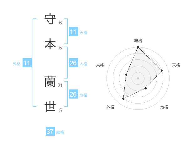 守本 蘭世さんの総格は37画の5点!
