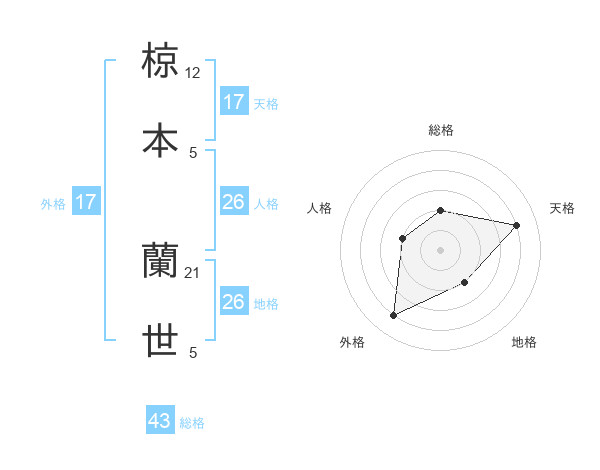 椋本 蘭世さんを姓名の画数から五運を鑑定