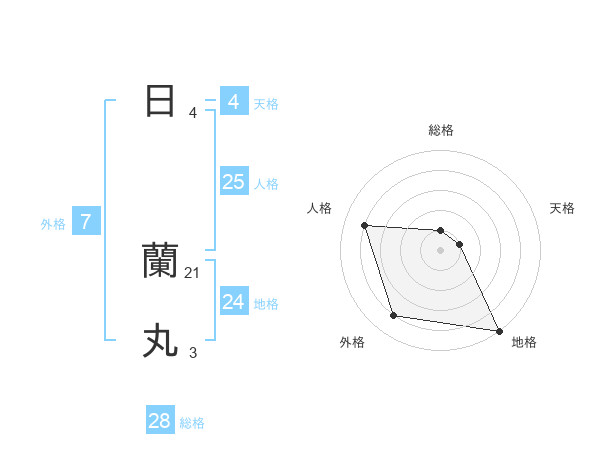 日 蘭丸さんの総格は28画の1点!